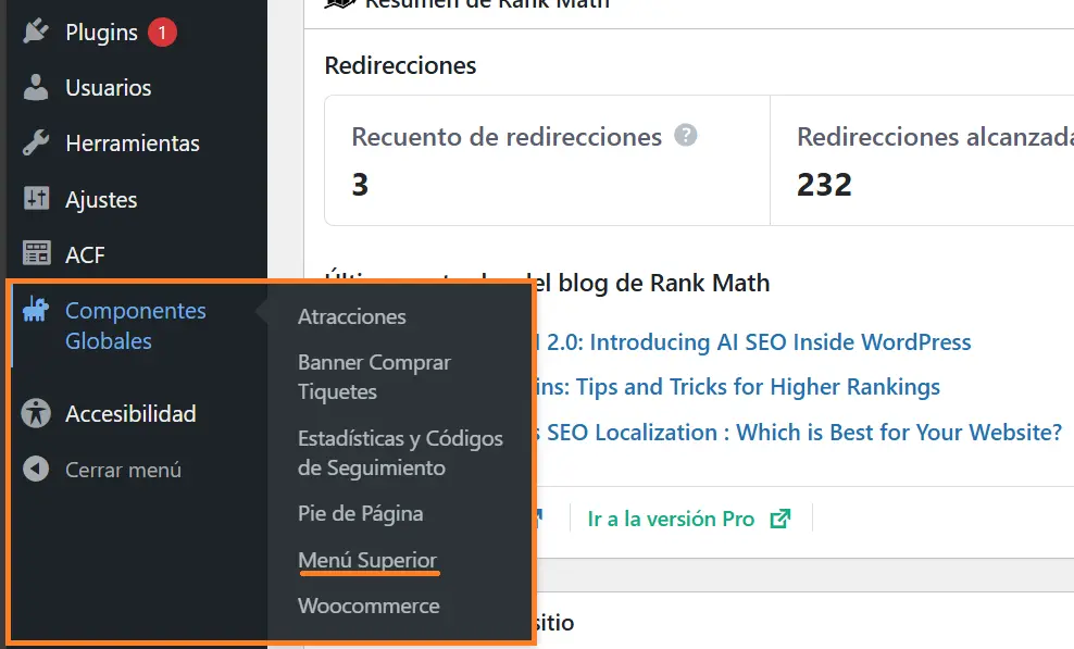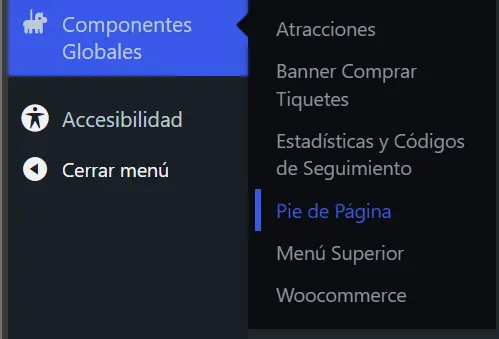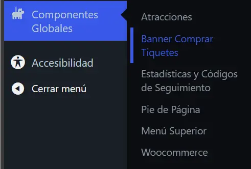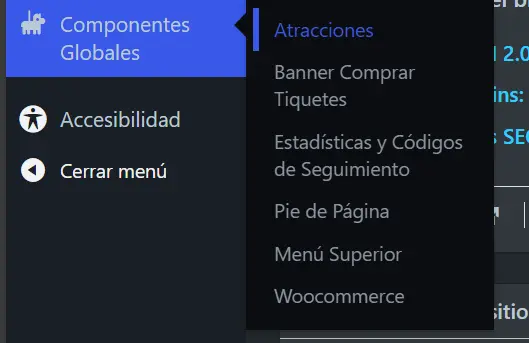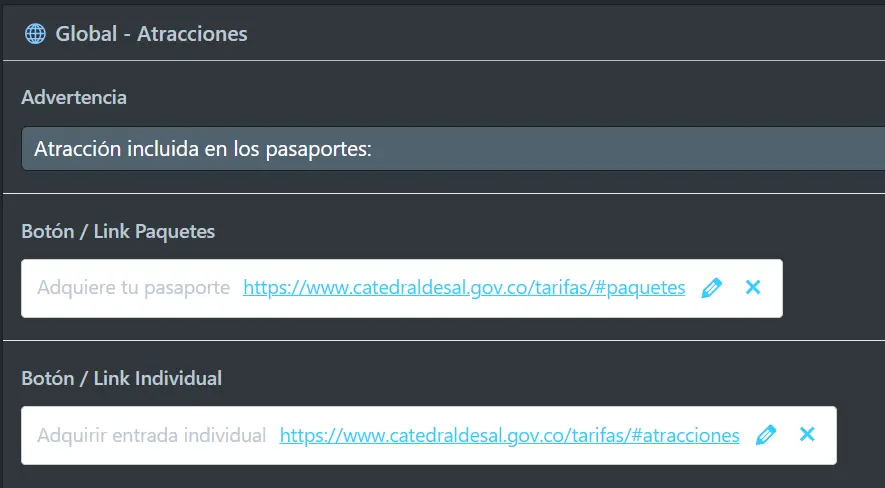 Vamos a: Componentes Globales > Atracciones. Veremos unicamente 2 campos: