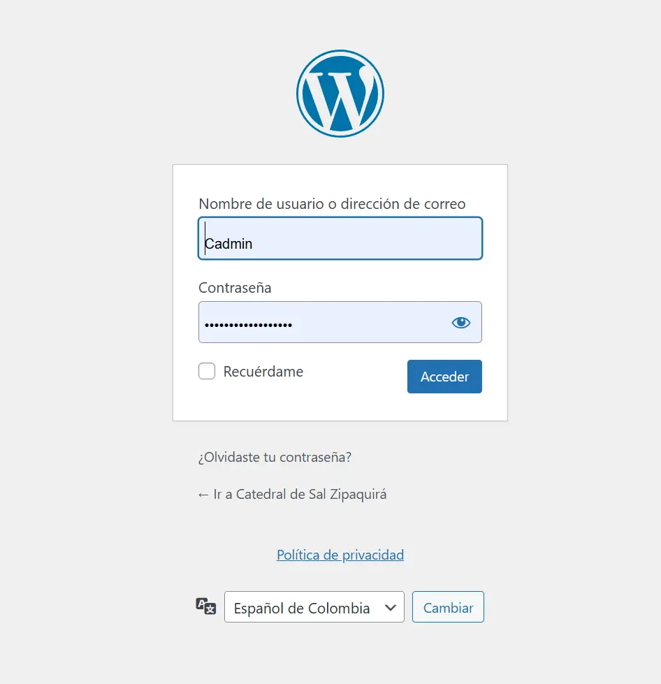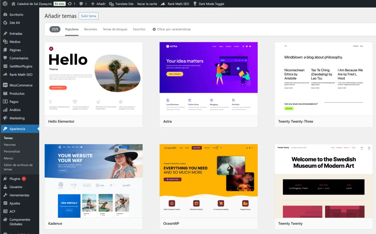 El tema activo por defecto es "Catedral de Sal Zipaquirá".