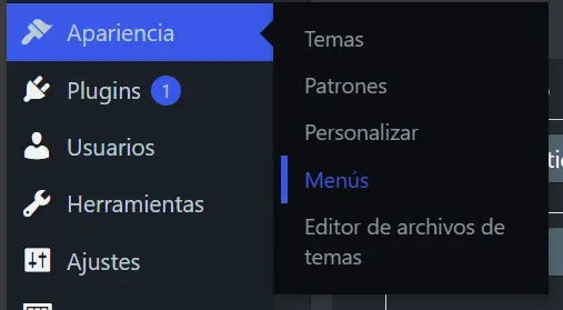 Administrar el Menú es muy sencillo, solo tenemos que ingresar a: Apariencia > Menús