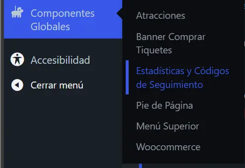 Vamos a: Componentes Globales > Estadísticas y Códigos de Seguimiento.
