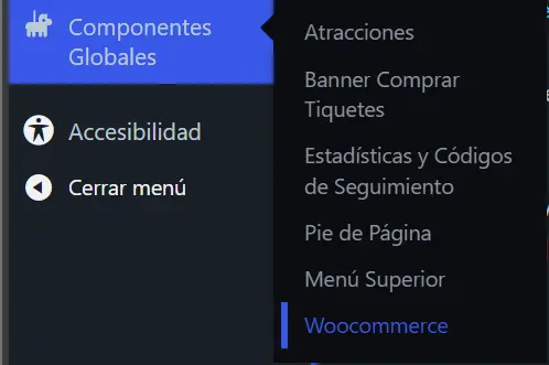 Vamos a: Componentes Globales >Woocommerce.
