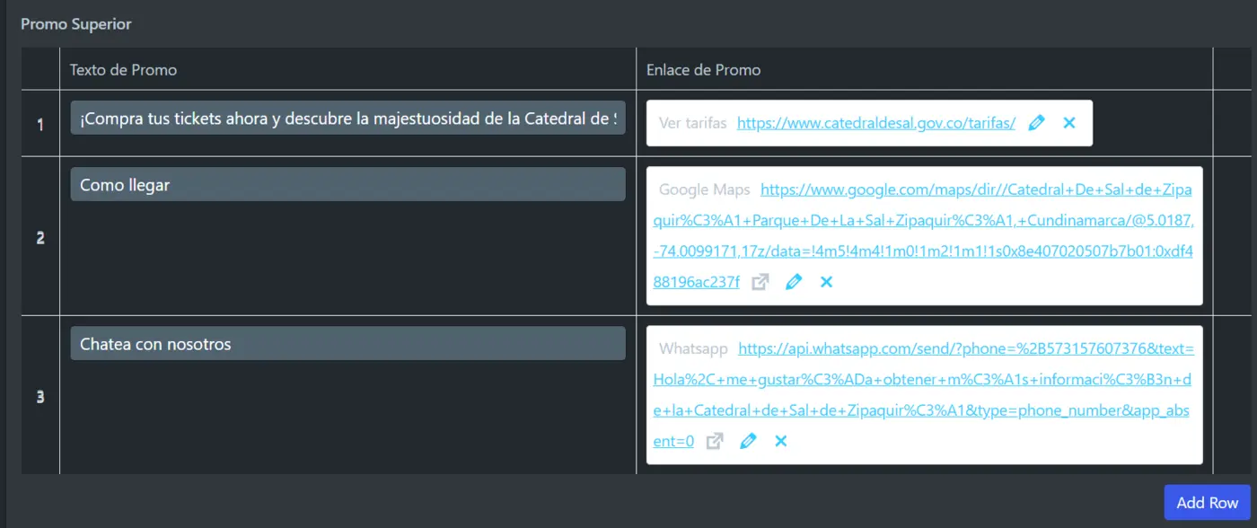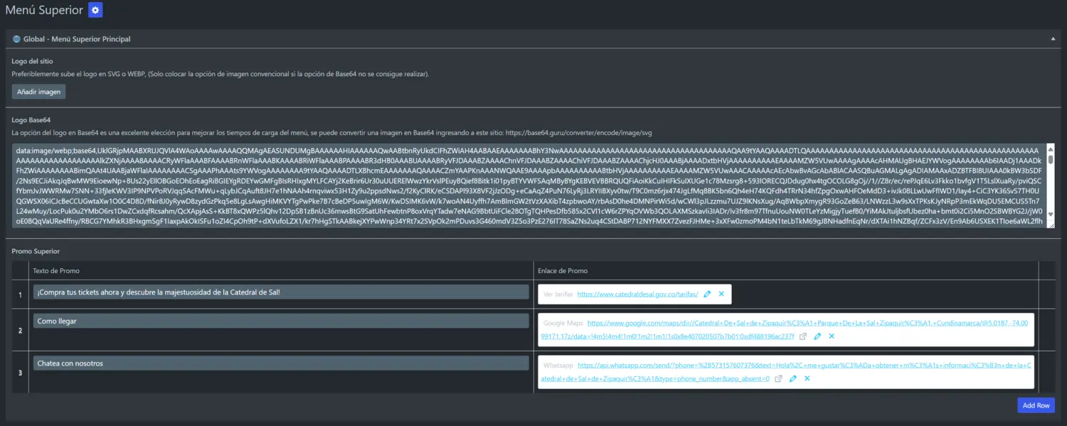 En la misma pagina de configuración Menú Superior podemos configurar la sección superior donde vemos 3 secciones que podemos modificar tanto el nombre como el boton.