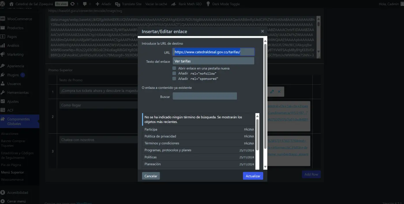 Este banner lo vamos a ver en 3 páginas, en el home, atracciones y servicios. Y finalmente al hacer clic nos llevara a cualquier link que pongamos pero por defecto dirige a la pogina de tarifas.